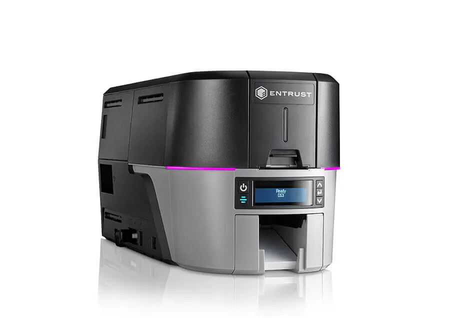 Impresora Entrust Sigma DS3 Dual-Sided es capaz de imprimir tarjetas plásticas a una o doble cara, en color o monocromo, con una mayor velocidad y acabado, admitiendo un módulo de laminación y funciones adicionales de seguridad como la impresión táctil.