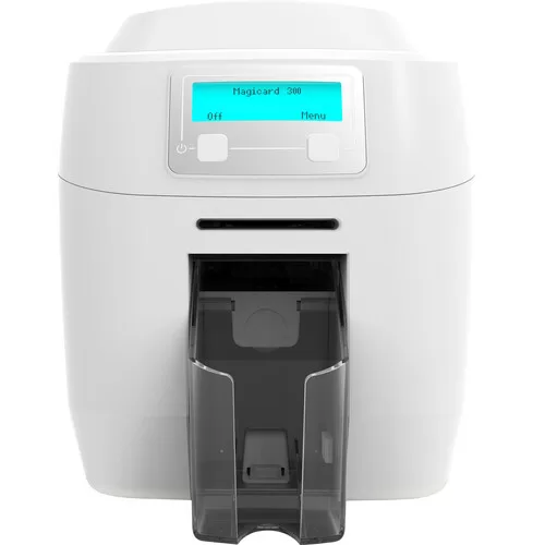 La nueva Impresora Magicard 300 Uno Single-Sided ha sido desarrollada para imprimir tarjetas de PVC personalizadas, una a una o en series pequeñas. Ofrece calidad de impresión profesional, una resolución de 300 dpi y una velocidad de 23 segundos por tarjeta personalizada a una cara en color.