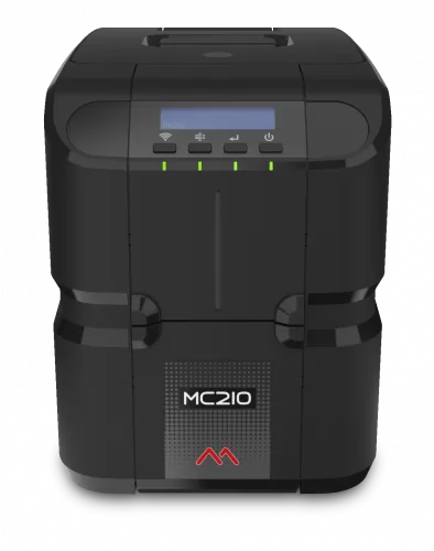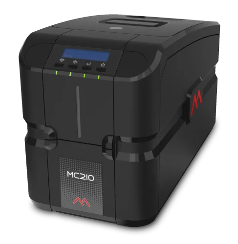 Impresora Matica MC210 Single Sided es una máquina directa a tarjeta de gama media, «caballo de batalla», que utiliza un robusto chasis metálico para una emisión fiable de tarjetas de identificación. Su elegante diseño italiano y su reducido tamaño hacen que pueda colocarse en cualquier escritorio o mostrador para la emisión de documentos de identidad in situ.