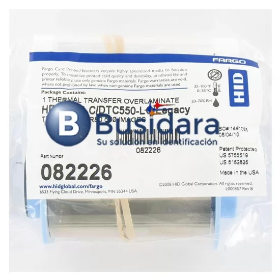 Para mantener la garantía de su impresora Fargo, optimizar el uso de su impresora y maximizar la calidad de sus tarjetas impresas, utilice únicamente cintas laminadas Fargo 82226 genuinas.