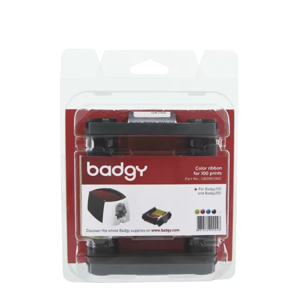 Las impresoras de tarjetas Badgy requieren consumibles Evolis diseñados especialmente para funcionar correctamente y garantizar el funcionamiento óptimo de su impresora de credenciales sin riesgo de daños. Para maximizar la calidad de la tarjeta impresa y la durabilidad de la impresora, use solo cintas certificadas Badgy CBGR0100C YMCKO.