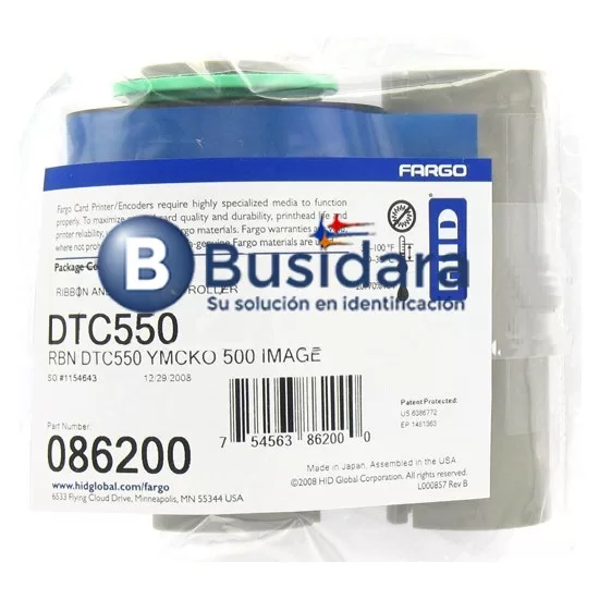 Las impresoras de tarjetas Fargo requieren cintas especializadas Fargo para funcionar correctamente. Para maximizar la calidad y durabilidad de la tarjeta impresa de la impresora, use solamente Fargo 86200 cintas YMCKO.